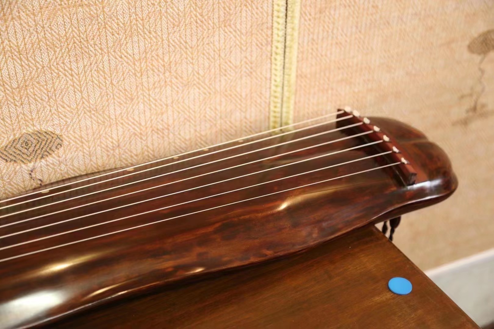浅栗色大漆,大器晚成,漆色饱满,岳山、冠角出彩,这个音质是我最期待的音质,整体均衡不张扬,沉稳松透,没有人可以抗拒,绝对的收藏级古琴,百年优质老料,喜欢可微信咨询